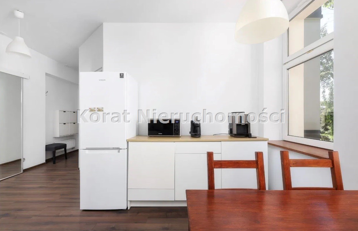 Okna kuchni i sypialni wychodzą na cichy ogród z możliwością wynajmu.