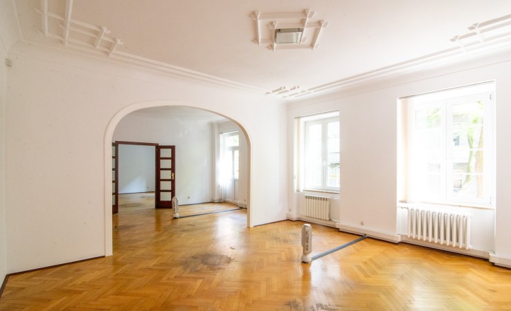 Do wynajęcia przestronny lokal o powierzchni 165 m², zlokalizowany na 1. piętrze elegancko wyremontowanej kamienicy w rejonie Placu Na Stawach.