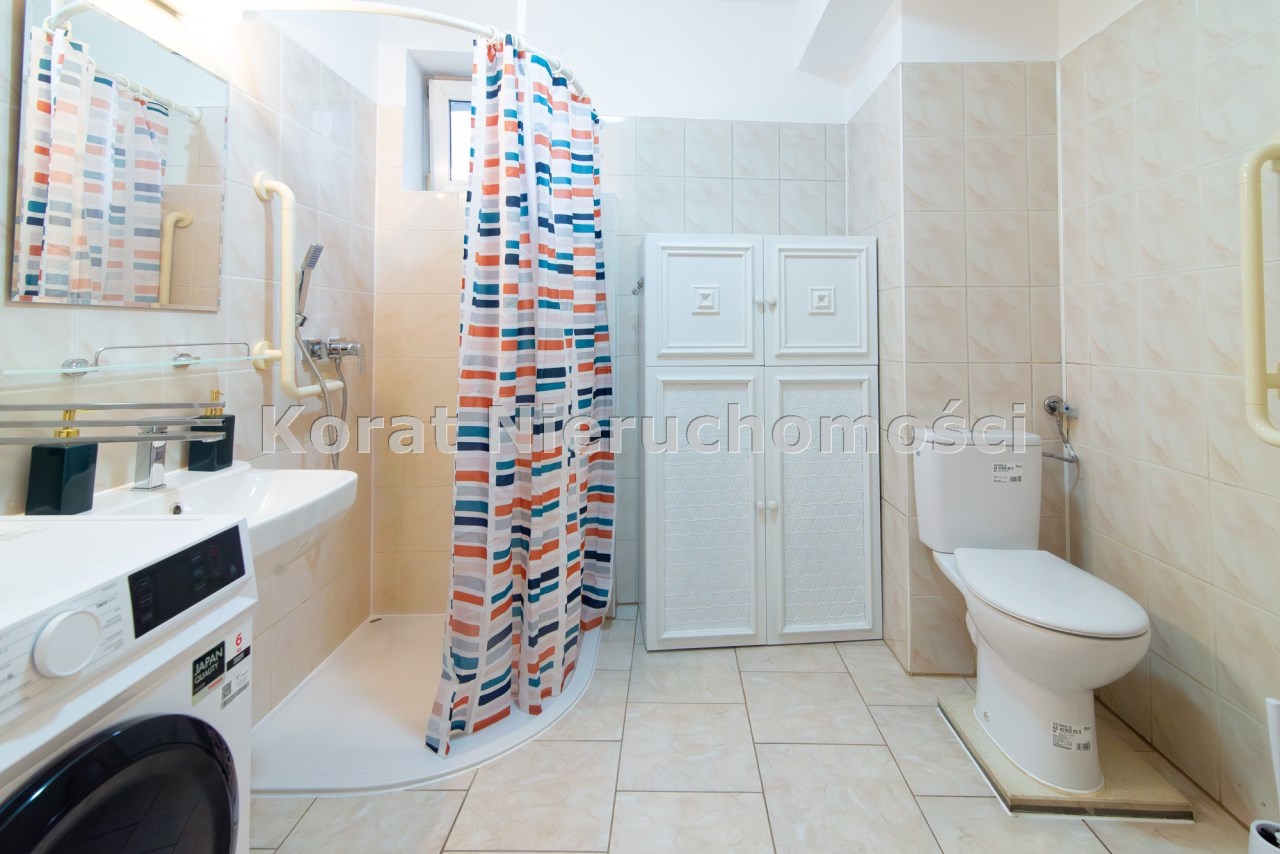 Drugi pokój to funkcjonalna sypialnia, która zapewnia komfort i prywatność. Łazienka została wyposażona w prysznic oraz pralkę, co dodatkowo podnosi wygodę korzystania z mieszkania. Ogrzewanie miejskie (MPEC) gwarantuje stabilne koszty eksploatacyjne oraz bezobsługowość.